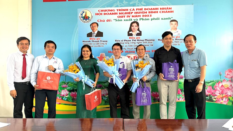 Các diễn giả tham gia chương trình(Thanhuytphcm.vn) - Sáng 29/12, Hội Doanh nghiệp huyện Bình Chánh tổ chức Chương trình Cà phê doanh nhân quý IV/2023. Bí thư Huyện ủy Bình Chánh Trần Văn Nam; Phó Chủ tịch UBND huyện Huỳnh Cao Cường tham dự chương trình.