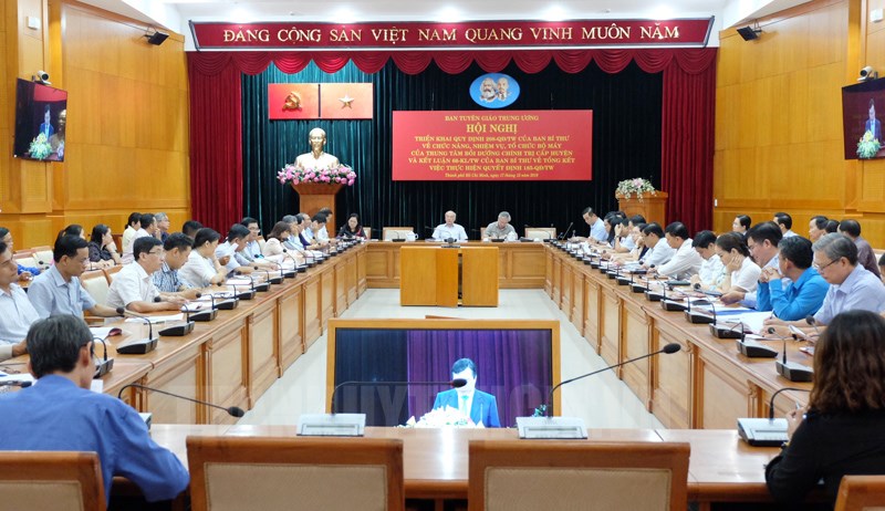 Cạnh đó, kiện toàn tổ chức và hoạt động của Trung tâm chính trị cấp huyện, bảo đảm sự thống nhất về chức năng, nhiệm vụ, đồng bộ về cơ cấu tổ chức bộ máy; có chế độ, chính sách đãi ngộ tốt để thu hút cán bộ, giảng viên giỏi. Đổi mới cơ chế hoạt động của trung tâm, tăng cường sự gắn kết với Ban tuyên giáo, trường chính trị tỉnh, bảo đảm thực hiện thống nhất, kịp thời và liên thông nội dung đào tạo, bồi dưỡng lý luận chính trị cho cán bộ, đảng viên nói chung và cán bộ, đảng viên ở cơ sở nói riêng.