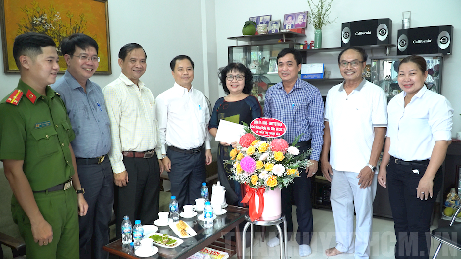 Đồng chí Ma Xuân Việt, Bí thư Quận ủy (thứ 4 từ trái qua) cùng đoàn công tác thăm cô Trần Thị Thanh Vân, nguyên chuyên viên Phòng Giáo dục và Đào tạo Quận 6(Thanhuytphcm.vn) - Ngày 16/11, Quận 6 tổ chức 3 đoàn đi thăm, chúc mừng các cơ sở giáo dục, nhà giáo tiêu biểu nhân kỷ niệm 40 năm Ngày Nhà giáo Việt Nam (20/11/1982-20/11/2022) do các đồng chí: Ma Xuân Việt, Bí thư Quận ủy; Ngô Thành Luông, Phó Bí thư Thường trực Quận ủy; Lê Thanh Bình, Phó Chủ tịch UBND Quận làm trưởng đoàn.