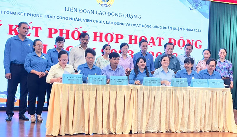 Hội nghị đã diễn ra Chương trình ký kết liên tịch phối hợp hoạt động giữa LĐLĐ Quận 6 với UBND Quận 6, Phòng Lao động Thương binh và Xã hội Quận, Bảo hiểm xã hội Quận, các ban ngành, đoàn thể Quận và UBND 14 Phường giai đoạn 2023 – 2028. Đồng thời, nhằm phát động hưởng ứng phong trào thi đua đặc biệt chào mừng Đại hội Công đoàn các cấp, chào mừng kỷ niệm 95 năm Ngày thành lập Công đoàn Việt Nam (28/7/1929 - 28/7/2024), đã có 10 công đoàn cơ sở đăng ký mô hình, công trình điển hình.
