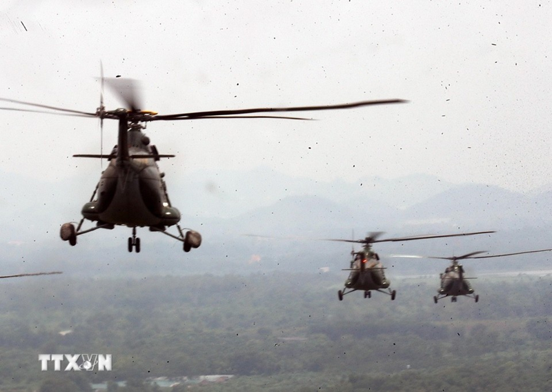 Máy bay trực thăng luyện tập chuẩn bị cho Đại lễ mừng Quốc khánh 2/9