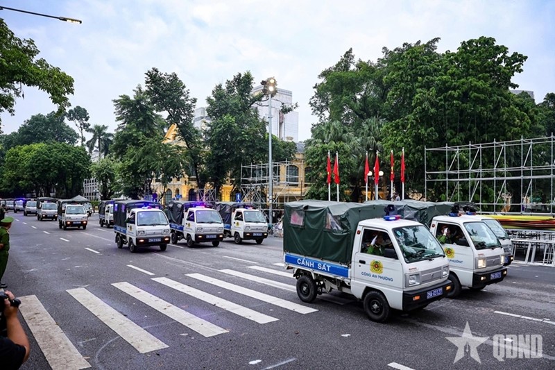 Sáng 7/8, Công an TP Hà Nội tổ chức tổng duyệt nội dung diễu binh, diễu hành cho Ngày hội vì Thủ đô bình yên và ra quân bảo đảm an ninh trật tự kỷ niệm 80 năm Cách mạng Tháng Tám thành công và Quốc khánh 2/9.