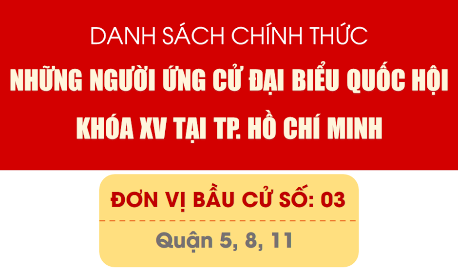 Danh sách chính thức những người ứng cử Đại biểu Quốc hội khóa XV tại TP. Hồ Chí Minh (Đơn vị bầu cử số: 03)