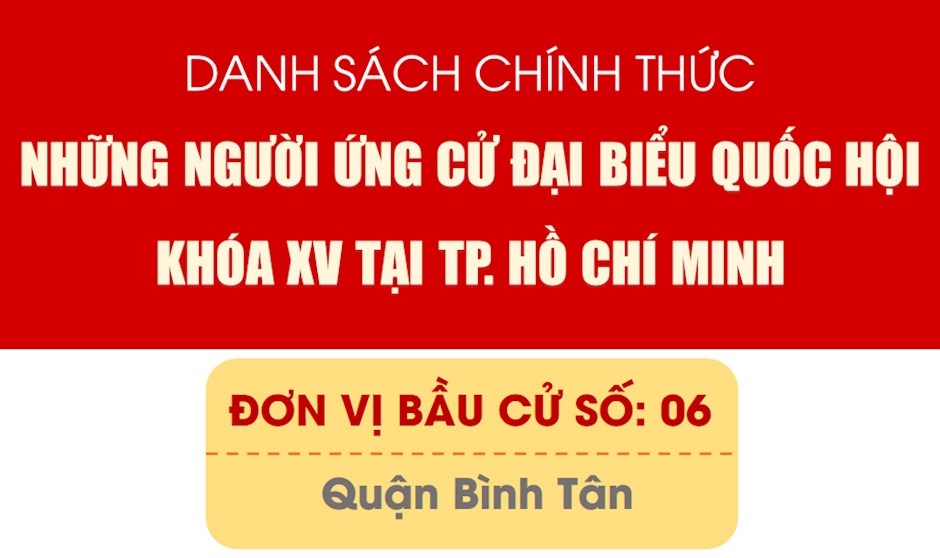 Danh sách chính thức những người ứng cử Đại biểu Quốc hội khóa XV tại TP. Hồ Chí Minh (Đơn vị bầu cử số: 06)
