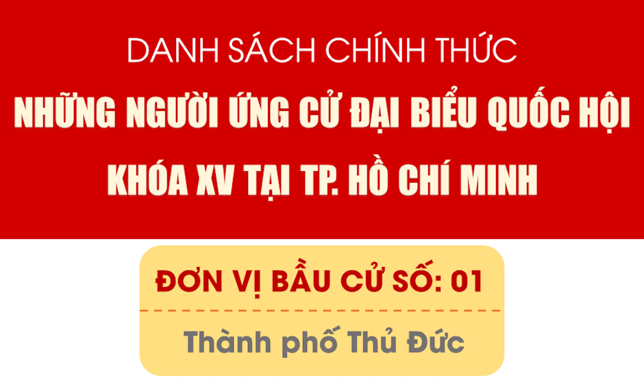 Danh sách chính thức những người ứng cử Đại biểu Quốc hội khóa XV tại TP. Hồ Chí Minh (Đơn vị bầu cử số: 01)