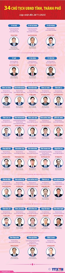 Trân trọng giới thiệu 34 Chủ tịch Ủy ban Nhân dân tỉnh, thành phố nhiệm kỳ 2021-2026, cập nhật đến ngày 28/11/2025.