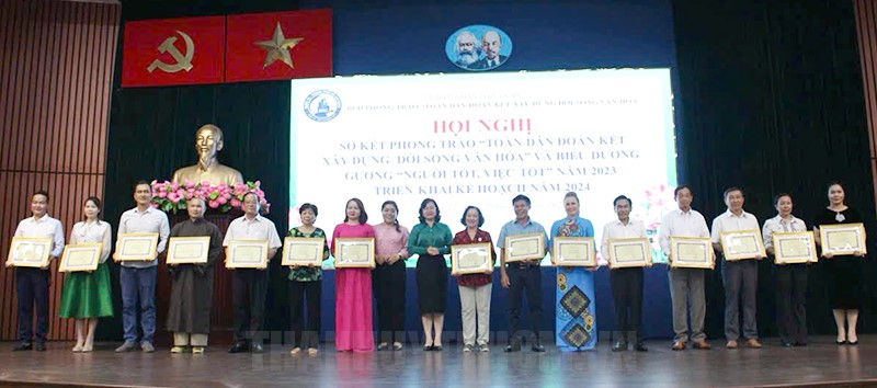 Anh Lê Văn Thông (người thứ 3 từ trái qua) được nhận tuyên dương Gương “Người tốt, việc tốt” cấp quận năm 2024.(Thanhuytphcm.vn) - Trong những năm gần đây, hoạt động an sinh xã hội trên địa bàn Quận 12 nói chung và phường Tân Chánh Hiệp nói riêng đã thu hút được nhiều nguồn lực xã hội cùng góp sức, chung tay chăm lo cho cộng đồng, bước đầu mang lại những hiệu quả thiết thực, nhiều cá nhân được quận tuyên dương Gương “Người tốt, việc tốt” qua các năm. Điển hình có anh Lê Văn Thông - sinh năm 1983, ngụ tại số 135/2A Tổ 6, Khu phố 6, phường Tân Chánh Hiệp, anh được mọi người biết đến với nhiều đóng góp, chăm lo cho các hộ dân có hoàn cảnh khó khăn tại địa phương và gương mẫu trong thực hiện vệ sinh môi trường, mỹ quan đô thị nơi mình sinh sống.