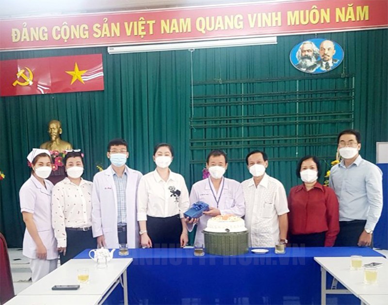 Bác sĩ Nghiệp (thứ 4 từ phải qua) cùng cán bộ, nhân viên Bệnh viện Tân Bình tiếp đón các đồng chí lãnh đạo quận Tân Bình đến thăm và chúc mừng dịp Ngày Thầy thuốc Việt Nam (27/2).(Thanhuytphcm.vn) - Hết lòng, hết sức cứu chữa cho các bệnh nhân nhiễm Covid-19 trong điều kiện làm việc khốc liệt, nhiều khi vừa làm nhiệm vụ chuyên môn bác sĩ điều trị, nhưng đồng thời cũng trở thành chuyên gia tâm lý, đóng vai người thân trong gia đình để động viên, chăm sóc những bệnh nhân đang trong giai đoạn hoang mang, sợ hãi; công việc vất vả và luôn đối mặt với nguy cơ lây nhiễm từ bệnh nhân, nhưng vượt lên hết là tinh thần trách nhiệm với người bệnh, và coi bệnh nhân như người thân của mình để cố gắng chữa trị - đó chính là chân dung của bác sĩ Đặng Quốc Nghiệp, Phó Giám đốc Bệnh viện Tân Bình.