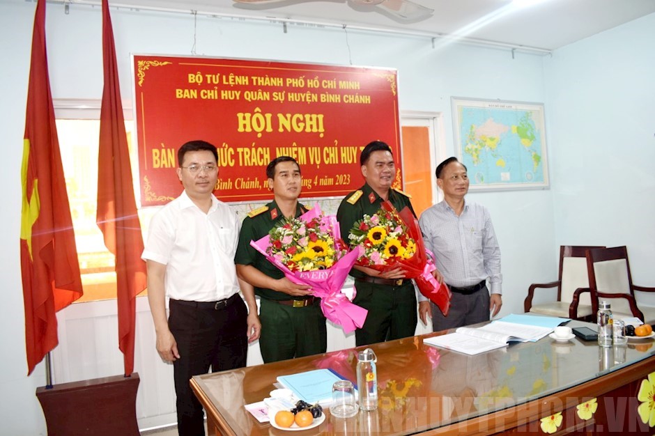 Tại hội nghị, lãnh đạo Bộ Tư lệnh TPHCM và lãnh đạo Huyện ủy - UBND huyện Bình Chánh đã chứng kiến thực hiện ký kết biên bản bàn giao chức vụ Chỉ huy trưởng BCHQS huyện Bình Chánh giữa đồng chí Liêu Quốc Toản và đồng chí Phan Thanh Thuận.