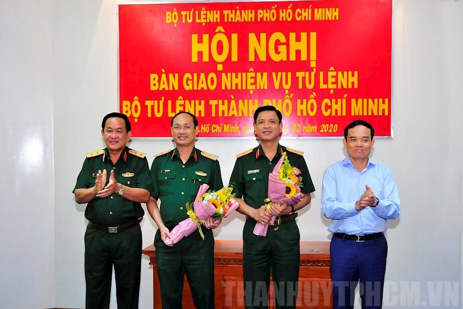 Trung tướng Võ Minh Lương và Phó Bí thư Thường trực Thành ủy TP Trần Lưu Quang tặng hoa chúc mừng hai đồng chí nhận nhiệm vụ mới(Thanhuytphcm.vn) - Chiều 27/2, Bộ Tư lệnh TPHCM tổ chức hội nghị bàn giao nhiệm vụ Tư lệnh Bộ Tư lệnh TPHCM. Trung tướng Võ Minh Lương, Ủy viên Trung ương Đảng, Tư lệnh Quân khu 7 chủ trì hội nghị. Dự hội nghị có các đồng chí: Trần Lưu Quang, Ủy viên Trung ương Đảng, Phó Bí thư Thường trực Thành ủy TPHCM; Ngô Minh Châu, Phó Chủ tịch UBND TPHCM; Thủ trưởng các cơ quan Quân khu và các sở, ban, ngành của TPHCM.
