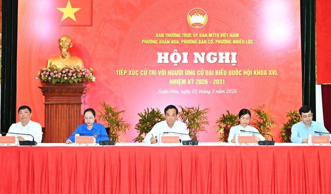 Bí thư Thành ủy TPHCM Trần Lưu Quang cùng các ứng cử viên ĐBQH tiếp xúc cử tri. (Ảnh: SGGP)Sáng 2/3, Ban Thường trực Ủy ban MTTQ Việt Nam các phường Xuân Hòa, Bàn Cờ và Nhiêu Lộc (TPHCM) tổ chức hội nghị tiếp xúc cử tri với người ứng cử đại biểu Quốc hội (ĐBQH) khóa XVI, nhiệm kỳ 2026-2031, tại đơn vị bầu cử số 6