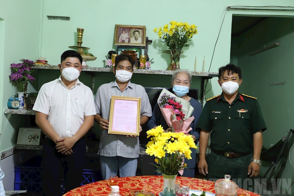 Thượng tá Nguyễn Đức Vinh cùng chính quyền địa phương trao Quyết định tặng “Nhà tình nghĩa Quân - Dân” cho gia đình bà Ngô Thị Búp(Thanhuytphcm.vn) - Nhân kỷ niệm 77 năm Ngày thành lập Quân đội Nhân dân Việt Nam (22/12/1944 - 22/12/2021), chiều 31/12, Bộ Tư lệnh TPHCM phối hợp với Ban Chỉ huy Quân sự huyện Nhà Bè tổ chức lễ khánh thành bàn giao “Nhà tình nghĩa Quân - Dân” cho gia đình bà Ngô Thị Búp ngụ tại nhà số 2771/12/1A ấp 6, xã Phú Xuân, huyện Nhà Bè. Đến dự có Thượng tá Nguyễn Đức Vinh, Trưởng Ban Dân vận, Phòng Chính trị, Bộ Tư lệnh TPHCM và đồng chí Trần Thanh Trúc, Phó Chủ tịch Ủy ban MTTQ Việt Nam huyện Nhà Bè.