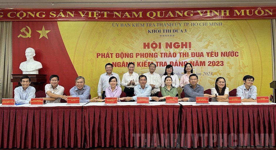 Các đơn vị Khối thi đua 3 thực hiện ký kết giao ước thi đua năn 2023(Thanhuytphcm.vn) - Chiều 30/3, Ủy ban Kiểm tra Đảng ủy Khối cơ sở Bộ Công Thương tại TPHCM, Khối trưởng Khối thi đua 3 - Ủy ban Kiểm tra Thành ủy đã tổ chức Hội nghị phát động phong trào thi đua yêu nước Ngành Kiểm tra Đảng năm 2023.