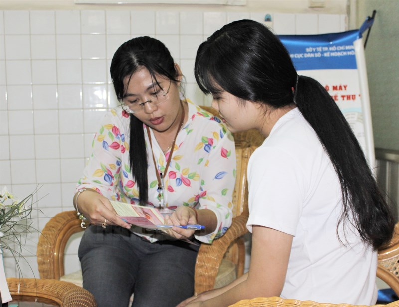 Tư vấn, vận động người dân TP về việc sinh đủ hai con. (Ảnh: N. Nam)(Thanhuytphcm.vn) – Nhằm giải quyết thực trạng mức sinh thấp tại TPHCM, ngày 26/11, Chi cục Dân số - Kế hoạch hóa gia đình (DS-KHHGĐ) tổ chức Hội thảo “Vấn đề mức sinh thấp tại TPHCM: Thực trạng, nguyên nhân và giải pháp” với nhiều chuyên gia, diễn giả trao đổi, chia sẻ về vấn đề này.