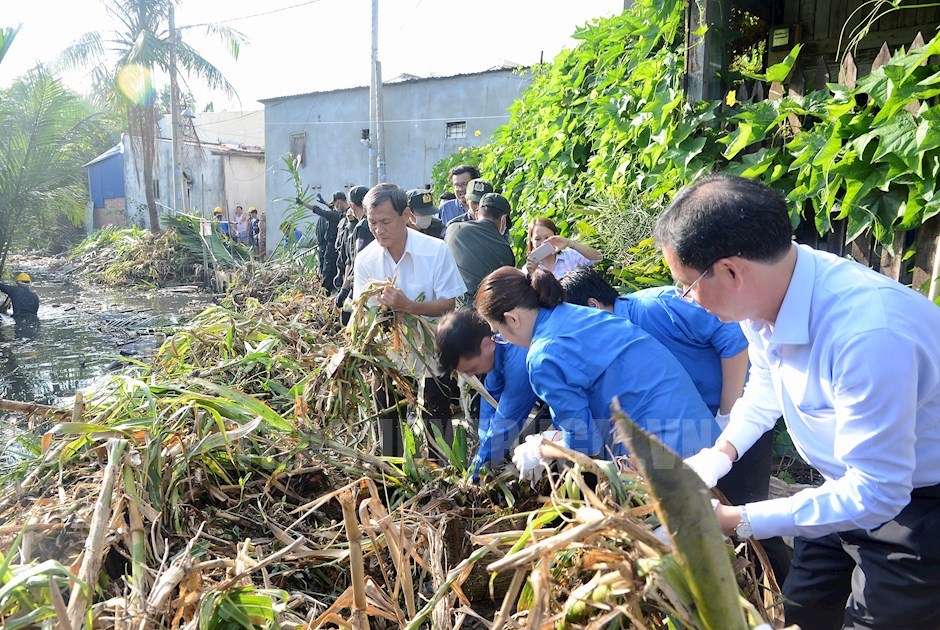 Cán bộ, đoàn viên thanh niên Quận 7 ra quân dọn dẹp nạo vét kênh rạch. Ảnh: Long Hồ(Thanhuytphcm.vn) - Mặc dù, trong thời gian ngắn triển khai thực hiện Chỉ thị 19-CT/TU nhưng bước đầu đã tạo được hiệu quả tích cực. Điều này cho thấy, mỗi khi chủ trương phù hợp, đúng đắn, kết hợp với công tác tuyên truyền thường xuyên liên tục và triển khai đồng bộ sẽ đem lại kết quả tốt.