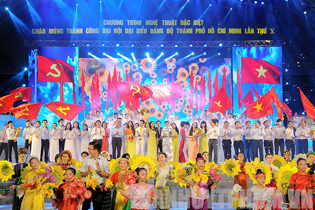 Chương trình nghệ thuật chào mừng Đại hội Đại biểu Đảng bộ TPHCM lần thứ X thành công. (Ảnh: Quốc Thanh) |