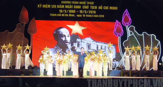 (Thanhuytphcm.vn) - Kỷ niệm 126 năm Ngày sinh Chủ tịch Hồ Chí Minh (19/5/1890 - 19/5/2016), 105 năm Ngày Bác Hồ ra đi tìm đường cứu nước (5/6/1911 - 5/6/2016), tối 19/5, tại Công viên 23/9 (Quận 1), Ban Tổ chức các ngày lễ lớn TPHCM đã tổ chức chương trình nghệ thuật đặc biệt “Hồ Chí Minh đẹp nhất tên Người”.