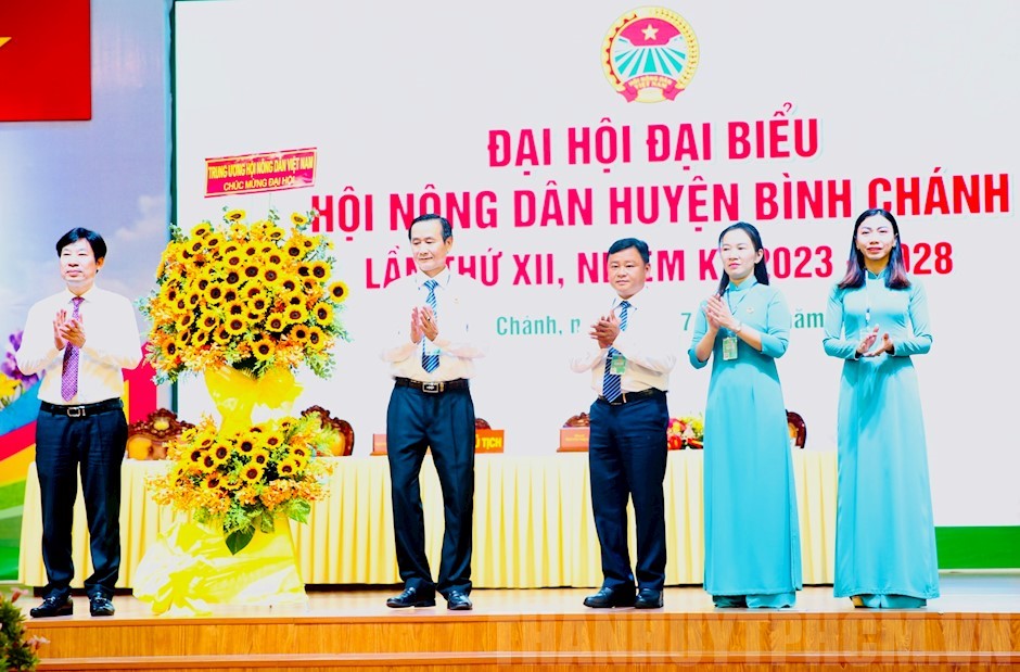 Phó Bí thư Thành ủy TPHCM Nguyễn Hồ Hải tặng hoa chúc mừng Đại hội đại biểu Hội Nông dân huyện Bình Chánh lần thứ XII nhiệm kỳ 2023 - 2028Trình bày phương hướng nhiệm vụ nhiệm kỳ 2023 - 2028, Phó Chủ tịch Hội Nông dân huyện Mai Ngươn Khánh cho biết, trong nhiệm kỳ 2023 - 2028, Đại hội để ra phương hướng, mục tiêu, nhiệm vụ, giải pháp, 17 chỉ tiêu, 2 công trình và 4 chương trình trọng điểm nhiệm kỳ 2023 - 2028.