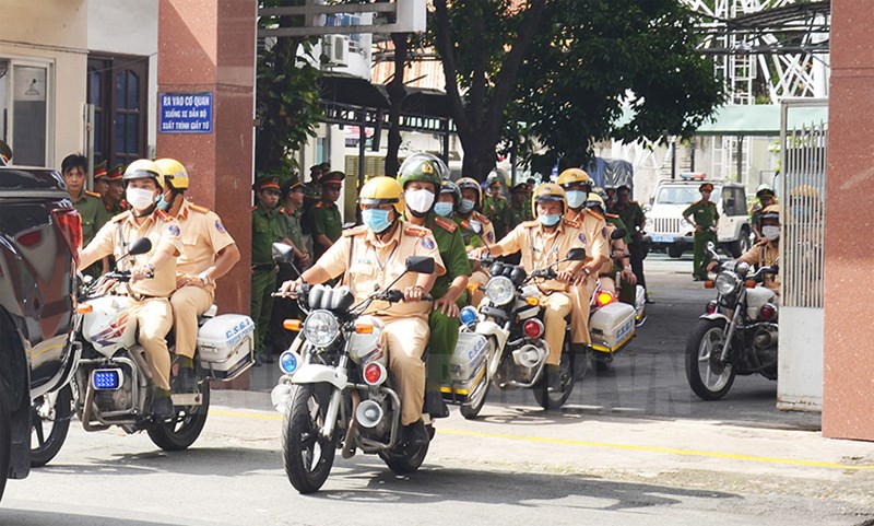 Lực lượng Công an quân ra quân diễu hành tuần tra.(Thanhuytphcm.vnn) - Chiều 29/9 Ban chỉ huy Công an quận Bình Thạnh đã ra quân mở đợt cao điểm tấn công trấn áp tội phạm bảo vệ Đại hội Đại biểu Đảng bộ TPHCM lần thứ XI và Đại hội Đại biểu Đảng ủy Công an Trung ương lần thứ VII. Đồng chí Vũ Ngọc Tuất, Bí thư Quận ủy, Chủ tịch HĐND quận Bình Thạnh đến dự.