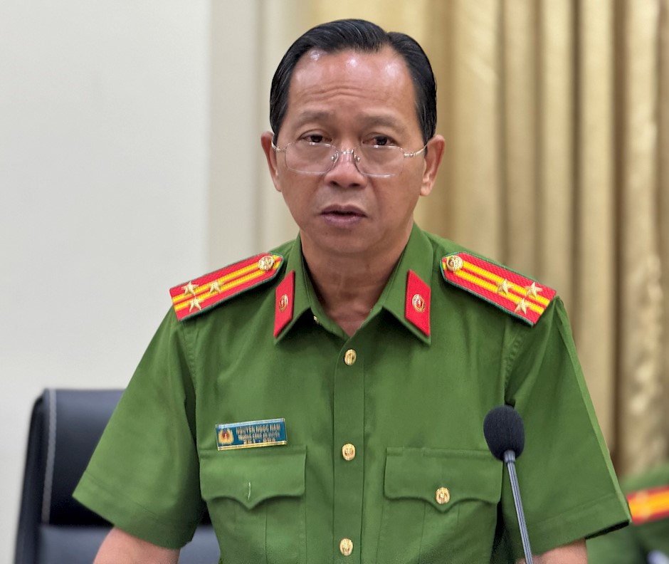 Thượng tá Nguyễn Ngọc Nam phát biểu tại họp báo(Thanhuytphcm.vn) - Chiều 27/10, Công an TPHCM tổ chức họp báo thông tin về việc xảy ra vụ cướp tài sản tại Phòng giao dịch Nhị Xuân, Ngân hàng thương mại Sài Gòn Thương Tín – Sacombank.