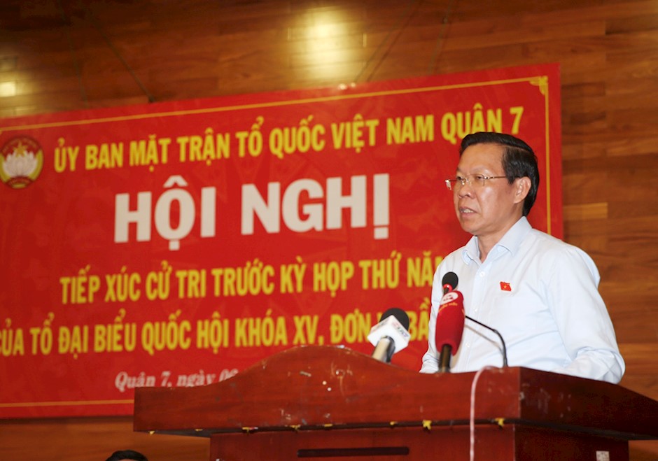 Đồng chí Phan Văn Mãi phát biểu tại hội nghị(Thanhuytphcm.vn) – Chiều 6/5, Tổ Đại biểu Quốc hội (ĐBQH) khóa XV – đơn vị 9 TPHCM gồm các ĐBQH: Ủy viên Trung ương Đảng, Phó Bí thư Thường trực Thành ủy, Chủ tịch UBND TP, Trưởng đoàn ĐBQH TP Phan Văn Mãi; Thiếu tướng Dương Văn Thăng, Phó Chánh án Tòa án Nhân dân tối cao, Chánh án Tòa án Quân sự Trung ương đã tiếp xúc cử tri Quận 7, báo cáo về chương trình kỳ họp thứ 5 Quốc hội khóa XV.