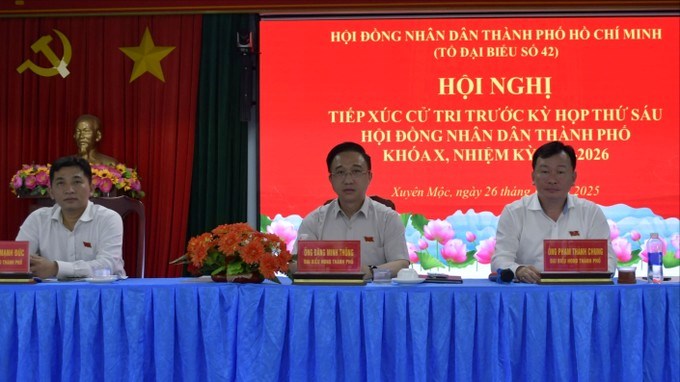 Đồng chí Đặng Minh Thông tham dự buổi tiếp xúc cử tri hai xã Xuyên Mộc và Bình Châu (Ảnh SGGP)Chiều 26/11, tổ đại biểu (ĐB) HĐND TPHCM số 42 do ĐB Đặng Minh Thông, Phó Bí thư Thành ủy TPHCM, làm tổ trưởng, đã tiếp xúc cử tri hai xã Xuyên Mộc và Bình Châu trước kỳ họp thứ 6, HĐND TPHCM khóa X.