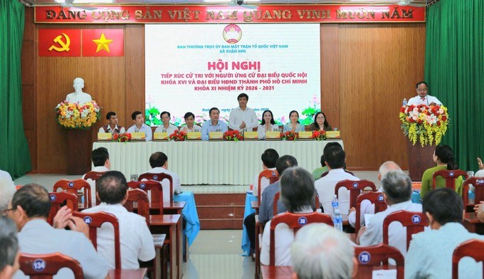 Những người ứng cử ĐBQH khóa XVI và ĐB HĐND TPHCM nhiệm kỳ 2026-2031 tiếp xúc cử tri tại xã Xuân SơnSáng 9/3, người ứng cử ĐBQH khóa XVI (đơn vị bầu cử số 5) và ứng cử ĐB HĐND TPHCM, nhiệm kỳ 2026-2031 (đơn vị bầu cử số 12) đã tiếp xúc cử tri tại xã Xuân Sơn (TPHCM).