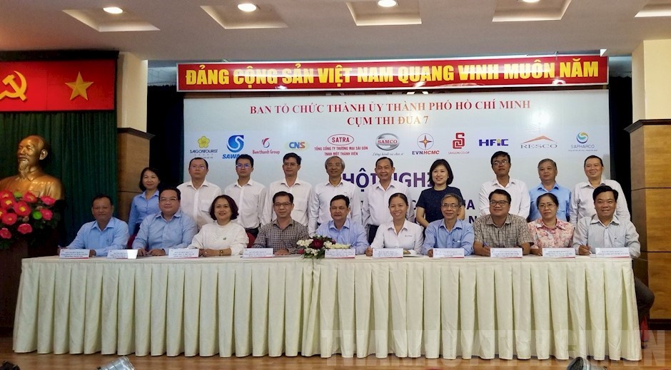 Các đơn vị trong Cụm thi đua 7 - Ban Tổ chức Thành ủy ký kết giao ước thi đua năm 2024(Thanhuytphcm.vn) - Chiều 11/4, tại Hội trường Tổng Công ty Cơ khí Giao thông vận tải Sài Gòn - TNHH Một thành viên (SAMCO), Cụm thi đua 7 - Ban Tổ chức Thành ủy tổ chức hội nghị ký kết giao ước thi đua ngành tổ chức xây dựng Đảng năm 2024.