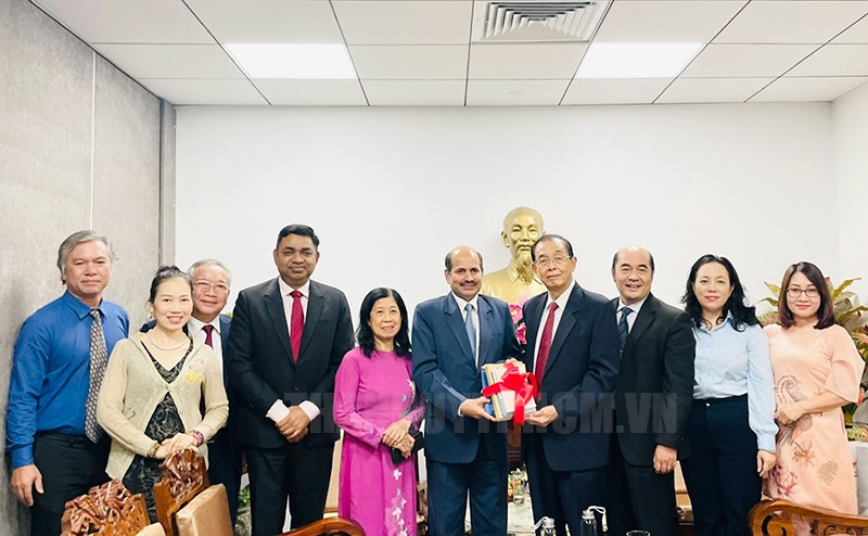 Các đại biểu Việt Nam và Ấn Độ tham dự buổi làm việc.(Thanhuytphcm.vn) - Tối 19/7, Hội hữu nghị Việt Nam - Ấn Độ TPHCM (VIFA) đã tổ chức buổi tiếp ông Sandeep Arya, Đại sứ nước Cộng hòa Ấn Độ tại Việt Nam, nhân chuyến đến thăm và làm việc tại TPHCM.