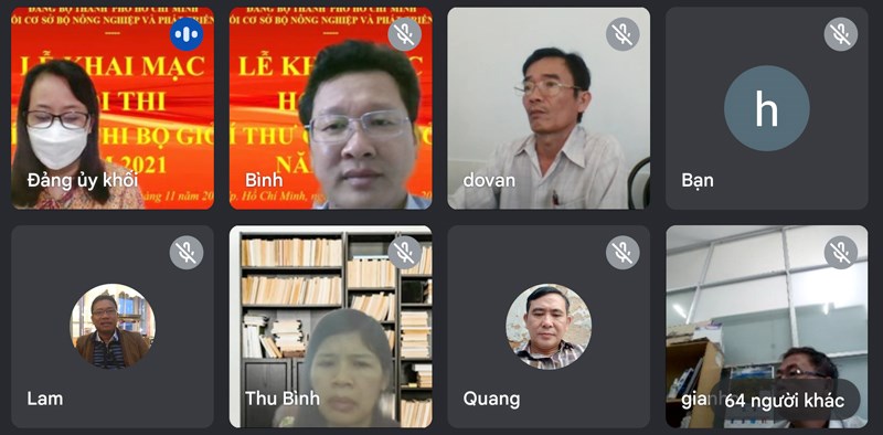 (Thanhuytphcm.vn) - Sáng 26/11, Đảng ủy khối cơ sở Bộ Nông nghiệp và Phát triển Nông thôn tổ chức khai mạc Hội thi Bí thư Chi bộ giỏi năm 2021 bằng hình thức trực tuyến vòng thi online (ảnh). Tham dự có đồng chí Nguyễn Duy Vũ, Bí thư Đảng ủy khối; các đồng chí đại diện cấp ủy, chi bộ cơ sở trực thuộc và 52 thí sinh tham gia Hội thi.