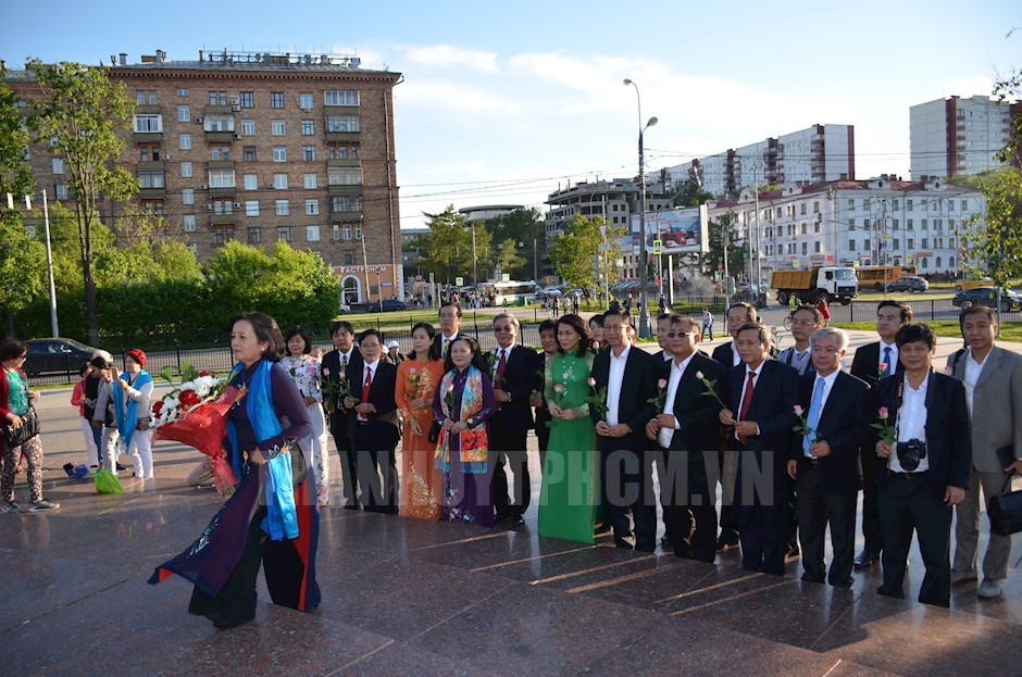 Đoàn cán bộ TPHCM dâng hoa tại Tượng đài Chủ tịch Hồ Chí Minh(Thanhuytphcm.vn) - Ngày 7/6/2017, Đoàn cán bộ TP Hồ Chí Minh do đồng chí Thân Thị Thư-Ủy viên Ban Thường vụ, Trưởng Ban Tuyên giáo Thành ủy TPHCM làm Trưởng đoàn đã dâng hoa tại Tượng đài Chủ tịch Hồ Chí Minh tại Moscow-thủ đô của Liên bang Nga nhân dịp hướng tới kỷ niệm 100 năm Cách mạng Tháng Mười Nga vĩ đại (7/11/1917-7/11/2017). Cùng tham gia đoàn có các đồng chí: Nguyễn Thị Lệ-Ủy viên Ban Thường vụ Thành ủy, Trưởng Ban Dân vận Thành ủy; Phạm Đức Hải-Thành ủy viên, Phó Chủ tịch Hội đồng Nhân dân TPHCM; Nguyễn Thị Thu-Thành ủy viên, Phó Chủ tịch Ủy ban Nhân dân TPHCM cùng tổng biên tập, lãnh đạo một số cơ quan báo chí và cán bộ cơ sở.