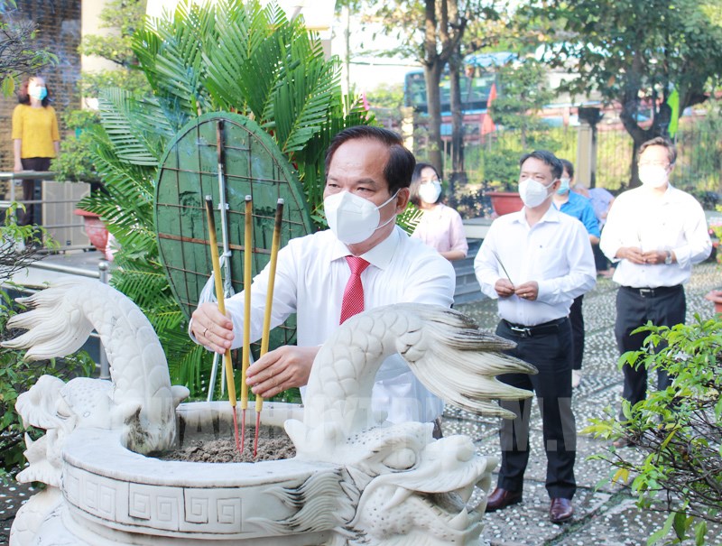 Đồng chí Trần Văn Khuyên, Bí thư Huyện ủy, Chủ tịch HĐND huyện cùng các đại biểu làm lễ dâng hương.(Thanhuytphcm.vn) - Nhân kỷ niệm 81 năm Ngày Nam Kỳ khởi nghĩa (23/11/1940 – 23/11/2021), sáng 23/11, đoàn đại biểu Huyện ủy – HĐND – UBND – Ủy ban MTTQ Việt Nam huyện Hóc Môn do Bí thư Huyện ủy, Chủ tịch HĐND huyện Trần Văn Khuyên làm trưởng đoàn đã làm lễ dâng hoa, dâng hương tại Bia Tưởng niệm Cầu Xáng, xã Tân Hiệp, huyện Hóc Môn.