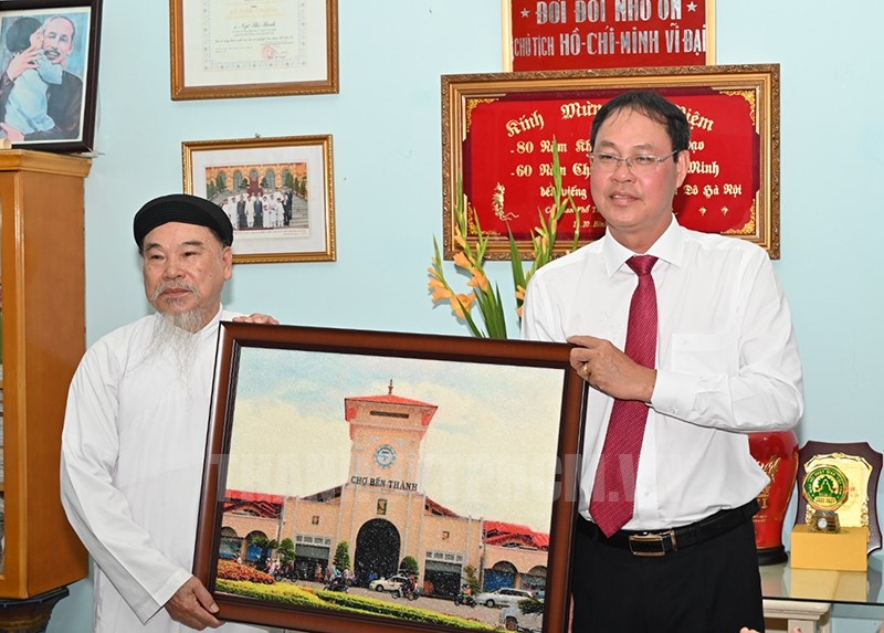 Thay mặt Ban Thường trực Ủy ban MTTQ Việt Nam TP, đồng chí Nguyễn Thành Trung trân trọng cảm ơn chức sắc, chức việc, đạo hữu trong thời gian qua đã luôn đồng hành, ủng hộ Ủy ban MTTQ Việt Nam các cấp thông qua việc hưởng ứng, tham gia tốt các phong trào, cuộc vận động do Chính quyền, MTTQ các cấp phát động như: cuộc vận động “Toàn dân đoàn kết xây dựng nông thôn mới - đô thị văn minh”, ủng hộ xây dựng, sửa chữa nhà tình nghĩa, nhà tình thương; trao tặng học bổng, hiến máu nhân đạo, giúp đỡ người nghèo neo đơn.