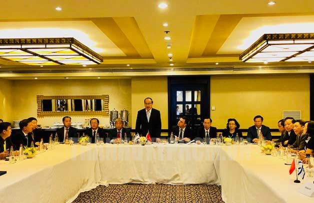 Bí thư Thành ủy TPHCM Nguyễn Thiện Nhân phát biểu chào mừng Toạ đàm(Thanhuytphcm.vn) - Tiếp tục chuyến thăm và làm việc tại Israel, sáng ngày 23/5/2018, tại Jerusalem (Israel), Đoàn Đại biểu TPHCM do đồng chí Nguyễn Thiện Nhân- Uỷ viên Bộ Chính trị, Bí thư Thành ủy, Trưởng đoàn Đại biểu Quốc hội TPHCM làm Trưởng đoàn đã tham dự Toạ đàm về các giải pháp đô thị thông minh. Cuộc tọa đàm này do Bộ Ngoại giao Israel tổ chức.