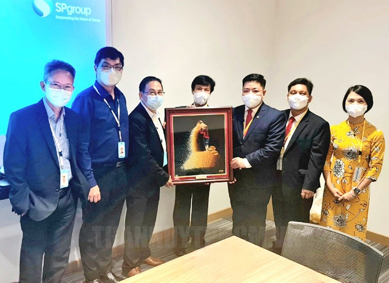 Ông Luân Quốc Hưng, Phó Tổng giám đốc (thứ 3, phải sang) thay mặt đoàn công tác EVNHCMC trao tặng tranh cho đại diện Tập đoàn Điện lực Singapore sau buổi làm việc.(Thanhuytphcm.vn) - Trong hai ngày 7 - 8/7/2022, đoàn công tác của Tổng công ty Điện lực TPHCM do ông Luân Quốc Hưng, Phó Tổng giám đốc dẫn đầu đã làm việc với Tập đoàn Điện lực Singapore (SP Group) tại Singapore.