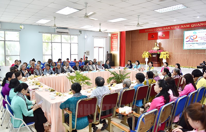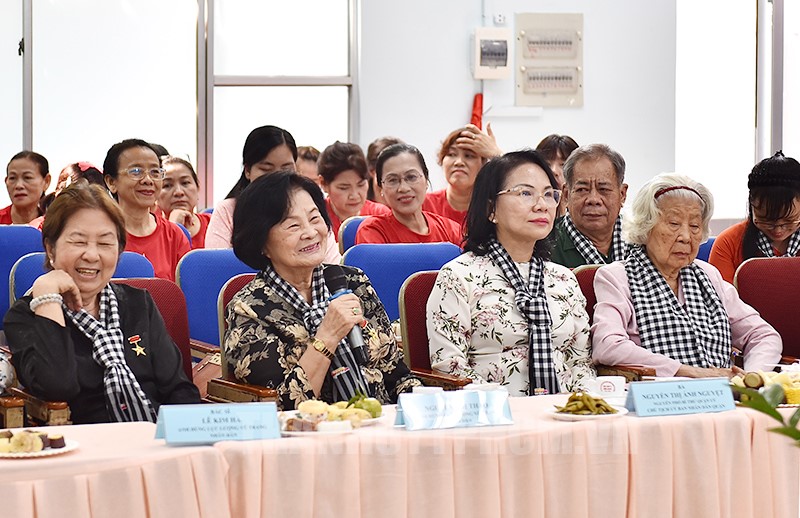 Buổi họp mặt đã trình chiếu phóng sự ngắn “Hoa Lửa” tái hiện những trang sử hào hùng và sự hy sinh to lớn của phụ nữ Việt Nam trong cuộc kháng chiến chống Mỹ cứu nước. Chủ tịch Hội LHPN quận Bùi Thanh Mai Tuyến gởi lời tri ân và tôn vinh những đóng góp to lớn của các thế hệ phụ nữ kiên cường, đã hy sinh, cống hiến cho nền độc lập, tự do của dân tộc.