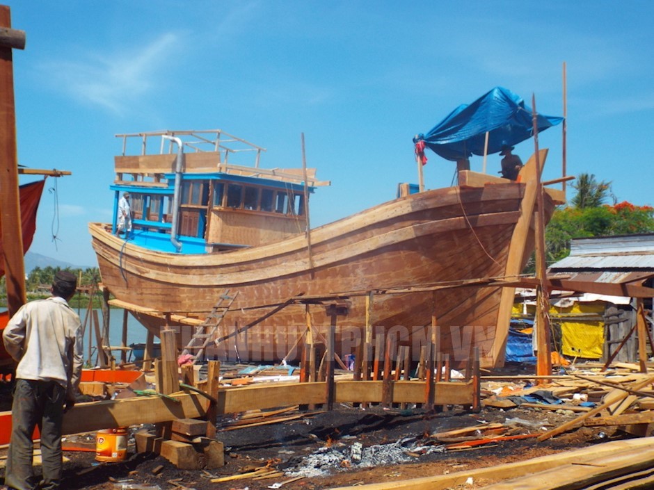 Một xưởng đóng tàu vỏ gỗ truyền thống tại Khánh Hòa(Thanhuytphcm.vn) - Giá gỗ đóng tàu cá đi biển hiện đã tăng gấp 2-3 lần so với trước, do đó, nhiều ngư dân gặp khó trong việc đóng mới, cải tạo, hoán đổi tàu cá, đặc biệt là chủ các tàu cá công suất nhỏ, đánh bắt gần bờ.