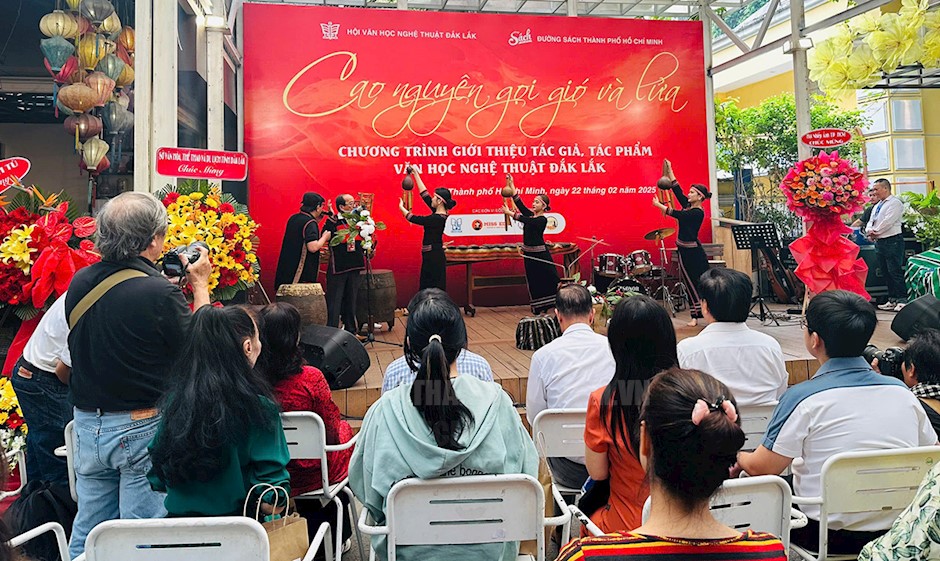 Du khách thưởng lãm biểu diễn nhạc cụ Tây Nguyên tại chương trình(Thanhuytphcm.vn) – Sáng 22/2, Hội Văn học nghệ thuật Đắk Lắk phối hợp với Đường sách TPHCM tổ chức chương trình giới thiệu tác phẩm văn học nghệ thuật của văn nghệ sĩ Đắk Lắk với chủ đề “Cao nguyên gọi gió và lửa” tại Đường sách TPHCM. Hoạt động nhằm chào mừng kỷ niệm 50 năm Ngày Chiến thắng Buôn Ma Thuột, giải phóng tỉnh Đắk Lắk (10/3/1975 - 10/3/2025), hướng đến kỷ niệm 50 năm Ngày Giải phóng miền Nam, thống nhất đất nước (30/4/1975 - 30/4/2025).