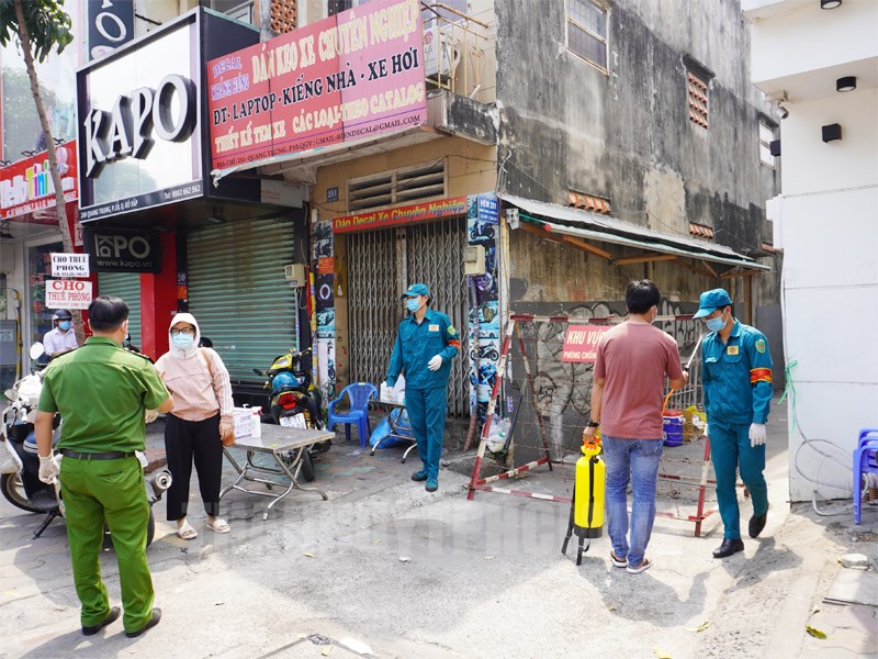 Lực lượng chức năng quận Gò Vấp tiến hành phong tỏa và phun khủ khuẩn toàn bộ hẻm 251/8, 251/10 Quang Trung, Phường 10 và các hộ dân xung quanh.(Thanhuytphcm.vn) - Theo báo cáo của Ban chỉ đạo phòng chống dịch Covid-19 quận Gò Vấp (Ban chỉ đạo), trong sáng 8/2, 5 trường hợp nghi nhiễm Covid-19 trên địa bàn quận Gò Vấp liên quan đến các ca mắc Covid-19 làm việc tại sân bay Tân Sơn Nhất đã được đưa đi cách ly tập trung tại Bệnh viện Dã chiến Củ Chi.