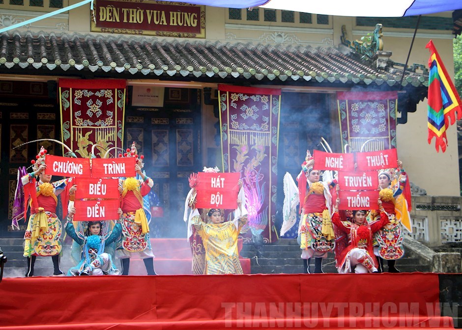 Tiết mục múa chào mừng của các nghệ sĩ Nhà hát Nghệ thuật Hát Bội TPHCM(Thanhuytphcm.vn) - Sau thời gian tạm ngưng do dịch Covid-19, chương trình biểu diễn nghệ thuật Hát Bội của Nhà hát Nghệ thuật Hát Bội TPHCM đã chính thức trở lại để phục vụ công chúng. Chương trình biểu diễn sáng ngày 14/11/2021 tại sân trước Đền thờ Hùng Vương đã thu hút khá đông người xem, trong đó phần lớn là các bạn trẻ.