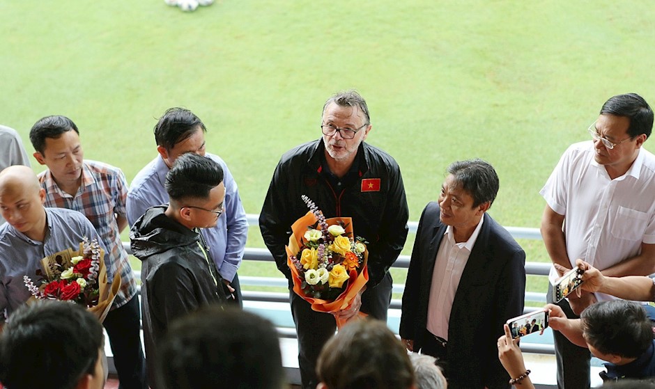 Lãnh đạo Bộ Văn hóa – Thể thao và Du lịch và Cục Thể dục Thể thao đến thăm và động viên đội tuyển Việt Nam trước buổi tập chiều 12/11(Thanhuytphcm.vn) - Sau buổi tập vào tối 12/11, HLV trưởng Troussier đã quyết định rút gọn danh sách đội tuyển Việt Nam xuống còn 28 cầu thủ trước khi lên đường sang Manila (Philippines) tham dự trận đầu tiên của vòng loại thứ 2 World Cup 2026 khu vực châu Á.
