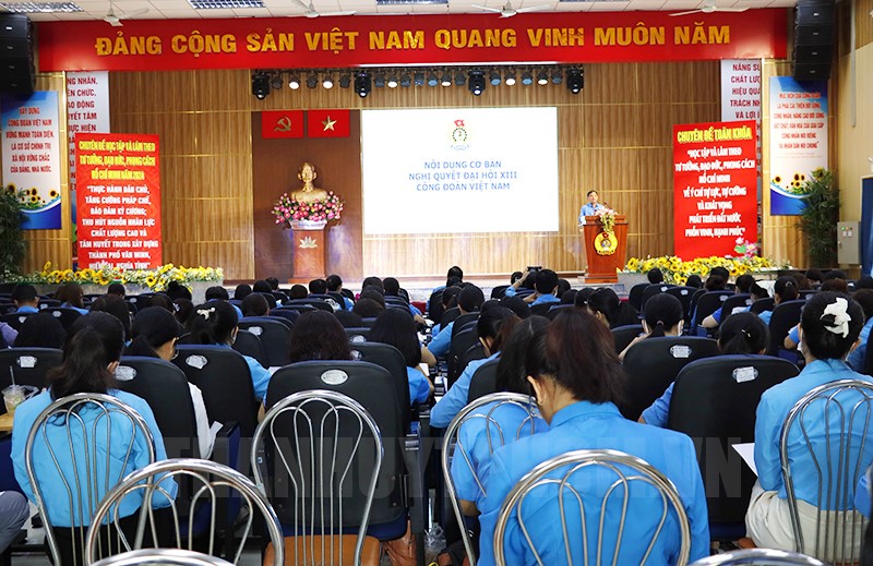Tại hội nghị, đồng chí Huỳnh Văn Tuấn, Trưởng Ban Tuyên giáo LĐLĐ TPHCM quán triệt và tuyên truyền Nghị quyết Đại hội XIII Công đoàn Việt Nam và Nghị quyết Đại hội XII Công đoàn TPHCM.