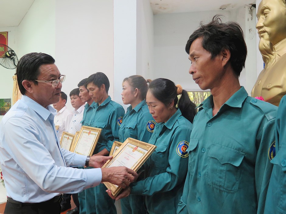Đồng chí Nguyễn Văn Nho, Ủy viên Ban Thường vụ Huyện ủy, Phó Chủ tịch HĐND huyện trao tặng giấy khen đến hộ dân nhận khoán bảo vệ rừng(Thanhuytphcm.vn) - Chiều 27/12, Ban Quản lý Rừng phòng hộ huyện Cần Giờ tổ chức hội nghị tổng kết hoạt động năm 2023 và triển khai nhiệm vụ năm 2024. Đồng chí Nguyễn Văn Nho, Ủy viên Ban Thường vụ Huyện ủy, Phó Chủ tịch HĐND huyện đã đến dự.