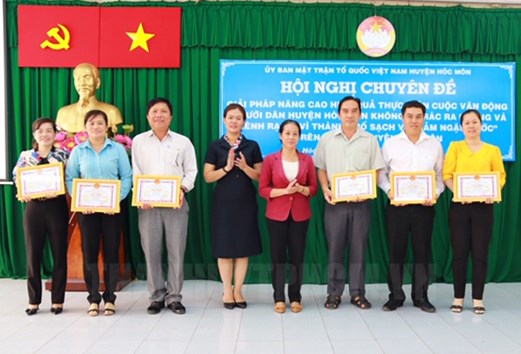 Trong thời gian qua, thực hiện Chỉ thị 19-CT/TU của Ban Thường vụ Thành ủy, Nghị quyết số 10-NQ/HU ngày 03/5/2019 của Huyện ủy Hóc Môn gắn với thực hiện Cuộc vận động “Toàn dân đoàn kết xây dựng nông thôn mới, đô thị văn minh” Ban Thường trực Ủy ban MTTQ Việt Nam huyện Hóc Môn phối hợp tổ chức lễ phát động Cuộc vận động “Người dân TPHCM không xả rác ra đường và kênh rạch, vì TP sạch và giảm ngập nước” với 525 người tham dự; tổ chức 13 xe loa tuyên truyền diễu hành qua 22 tuyến đường chính trên địa bàn các xã, thị trấn. Sau lễ phát động, các xã - thị trấn đồng loạt tiến hành ra quân tổng vệ sinh môi trường thu hút 1.968 lượt người tham gia phát 25.000 tờ bướm tuyên truyền, thu gom và chuyển đi xử lý hơn 28 tấn rác...