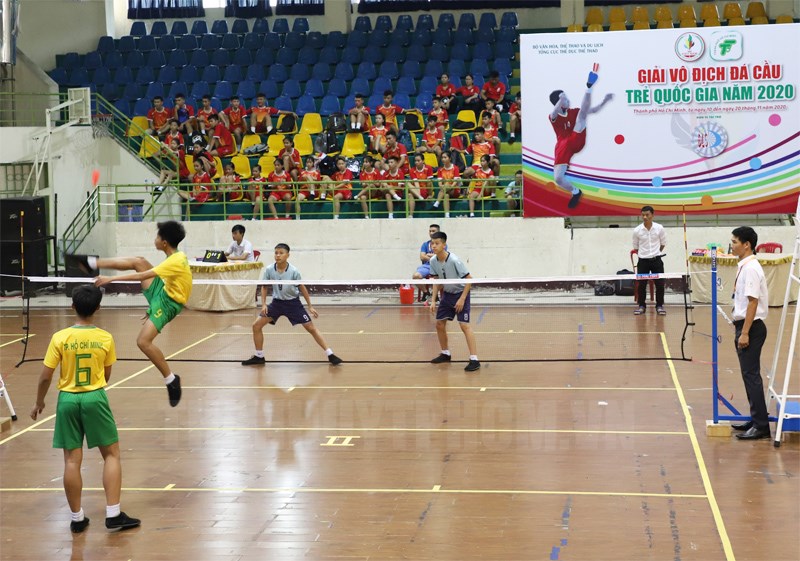 Các đội thi đấu nội dung đá cầu đôi nam.(Thanhuytphcm.vn) - Sáng 12/11, Sở Văn hóa và Thể thao TPHCM tổ chức khai mạc Giải vô địch đá cầu trẻ quốc gia năm 2020 tại Nhà thi đấu Trung tâm Thể dục thể thao Quận 4. Dự lễ khai mạc có các đồng chí: Mạc Xuân Tùng,Trưởng Bộ môn Đá cầu Tổng Cục Thể dục thể thao; Nguyễn Nam Nhân, Trưởng phòng Quản lý Thể dục thể thao Sở Văn hóa và Thể thao TPHCM.
