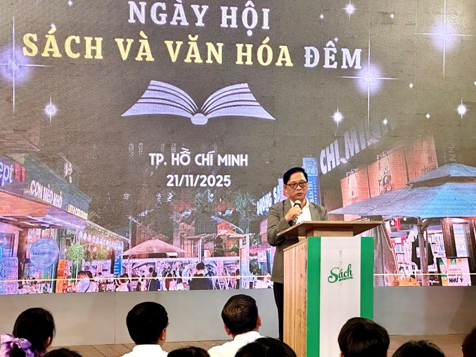 Tối 21/11, tại Đường sách TPHCM diễn ra chương trình khai mạc “Ngày hội sách và văn hóa đêm” lần thứ nhất. Đây là chương trình thí điểm nhằm mở rộng mô hình hoạt động văn hóa đọc, từng bước hình thành không gian sinh hoạt văn hóa về đêm, phục vụ người dân và du khách.
