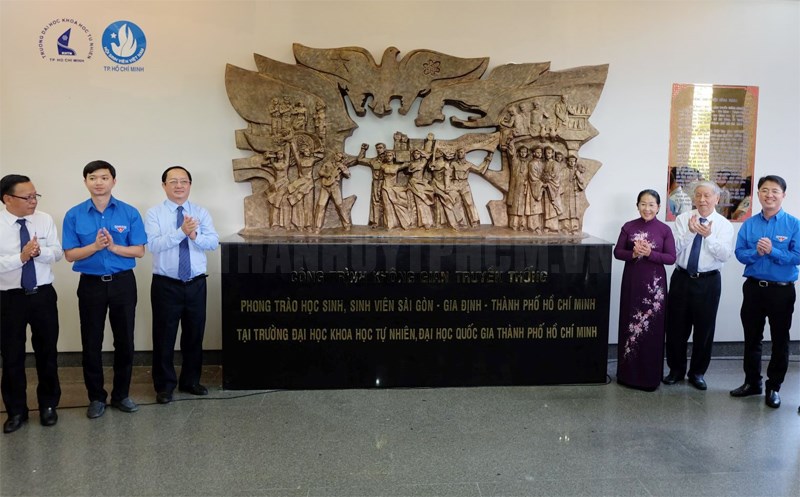 Phó Bí thư Thành ủy TPHCM Võ Thị Dung và các đại biểu tham dự lễ khánh thành công trình. (Ảnh: Thy Dương)(Thanhuytphcm.vn) – Ngày 29/9, Hội Sinh viên Việt Nam TPHCM và Trường Đại học Khoa học Tự nhiên, Đại học Quốc gia TPHCM phối hợp tổ chức Lễ khánh thành công trình “Không gian truyền thống phong trào học sinh, sinh viên Sài Gòn - Gia Định - TPHCM” tại Trường Đại học Khoa học Tự nhiên.