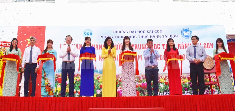 Phó Chủ tịch UBND TP Nguyễn Thị Thu cùng các đại biểu cắt băng khánh thành Trường Trung học Thực hành Sài Gòn. (Ảnh: Đan Như)(Thanhuytphcm.vn) - Ngày 7/9, Trường Trung học Thực hành Sài Gòn (thuộc Đại học Sài Gòn) đã tổ chức khánh thành trường và khai giảng năm học mới 2018 - 2019. Đến dự có Phó Chủ tịch UBND TP Nguyễn Thị Thu.