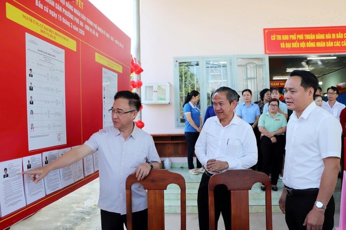Đoàn công tác cũng đã kiểm tra công tác chuẩn bị bầu cử tại 5 điểm bỏ phiếu trên địa bàn phường Thuận Giao.