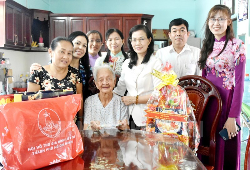 Đoàn đến thăm, tặng quà Mẹ Việt Nam Anh hùng Trang Thị Ơn.(Thanhuytphcm.vn) - Chiều 18/1, đoàn đại biểu Huyện ủy-HĐND-UBND- Ủy ban Mặt trận Tổ quốc Việt Nam huyện Bình Chánh và Hội hỗ trợ gia đình liệt sĩ TPHCM do đồng chí Nguyễn Thị Kim Dung, Phó Bí thư Thường trực Huyện ủy làm trưởng đoàn đã đến thăm, tặng quà cho 3 Bà Mẹ Việt Nam Anh hùng, nhân dịp Tết Nguyên đán Tân Sửu năm 2021.